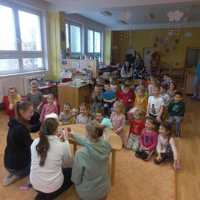 Tak zní název akce, kterou si 13. 2. 2023 přichystali studenti 1.A SPgŠ pro MŠ Komenského v Boskovicích. Studenti si ve skupinkách připravili krátké loutkové pohádky, které hráli s předměty denní potřeby. Předměty navíc mluvily předmětovou řečí. Děti ve školce měly za úkol poznat o jaké pohádky se jedná a tím studentům pomoci pohádky vysvobodit. Po každé pohádce si společně zahráli krátkou hru.