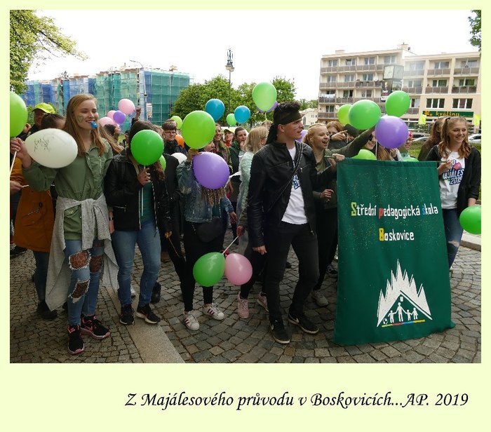 Boskovický majáles 2019 je akce, kterou pořádají studenti všech středních škol v Boskovicích pod záštitou o.p.s GYBO při Gymnáziu Boskovice. Studenti chtějí obnovit tradici majálesů, chtějí navázat na jejich historii (která měla v Boskovicích dlouholetou tradici) a chtějí dát všem studentům, ale i všem lidem ve středoškolském centru regionu akci, na které oslaví příchod jara a krásy studentského života. Zahájení Majálesu Boskovice 2019 představoval majálesový průvod, jehož se účastnili žáci SPgŠ Boskovice, Gymnázia Boskovice, SŠ André Citroena Boskovice a VASS Boskovice. Naši žáci, ač poslední v průvodu, byli samozřejmě nejvíce slyšet a nejvíce vidět. A zelená byla naše barva. Všem účastníkům průvodu za naši školu děkujeme.