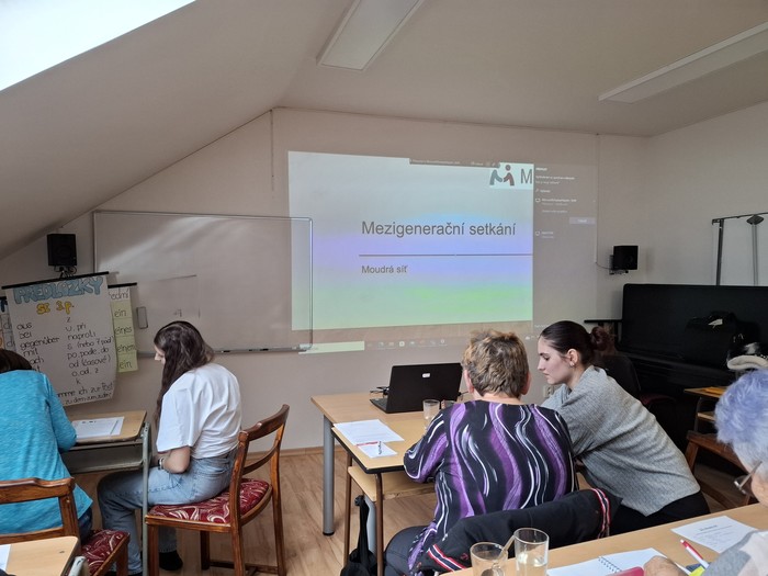 V pátek 21. listopadu 2025 se na naší škole uskutečnilo další Mezigenerační setkání. Projekt je realizován pod záštitou organizace Moudrá síť, která pomáhá seniorům orientovat se v digitálních technologiích. Naši žáci si připravili prezentace na vybraná témata, po nichž následovaly individuální konzultace. Celá akce proběhla velmi úspěšně – účastníci si odnesli nové znalosti a dovednosti a společně jsme strávili příjemné, smysluplné dopoledne.