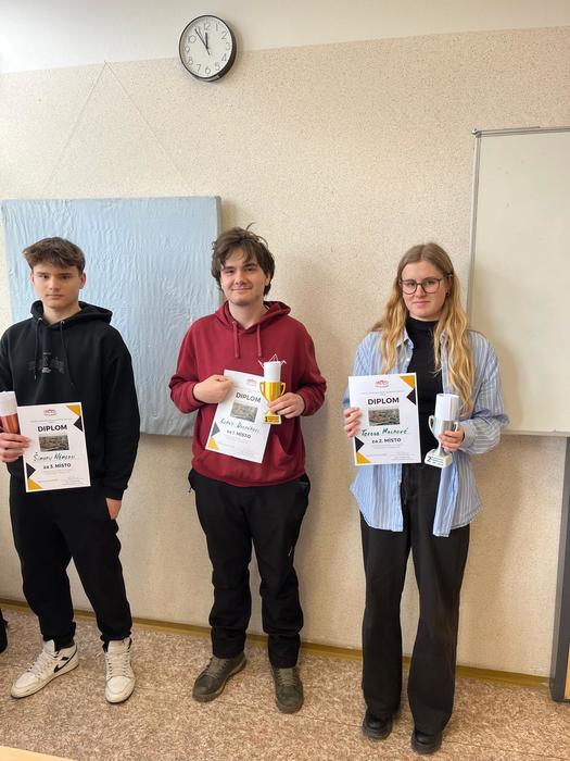 Dne 25.2.2026 se Tereza Machová ze třídy 2.C a Nikol Hubertová ze třídy 2.A zúčastnily okresního kola konverzační soutěže v anglickém jazyce, kategorie III.C, která byla určena žákům 1. až 3. ročníků středních odborných škol. Na základě ústního pohovoru na dané téma se Tereza Machová umístila na krásném 2.místě a Nikol Hubertová na 4.místě. Soutěž pořádalo SVČ Blansko.